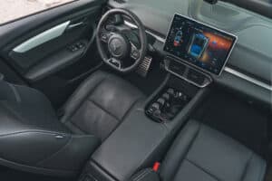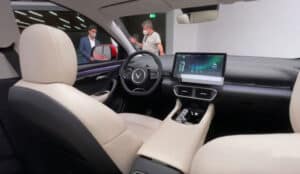 - Thiết kế: Nội thất hiện đại với màn hình cảm ứng trung tâm kích thước lớn (15,6 inch), ghế bọc da nhân tạo hoặc da cao cấp tùy phiên bản.